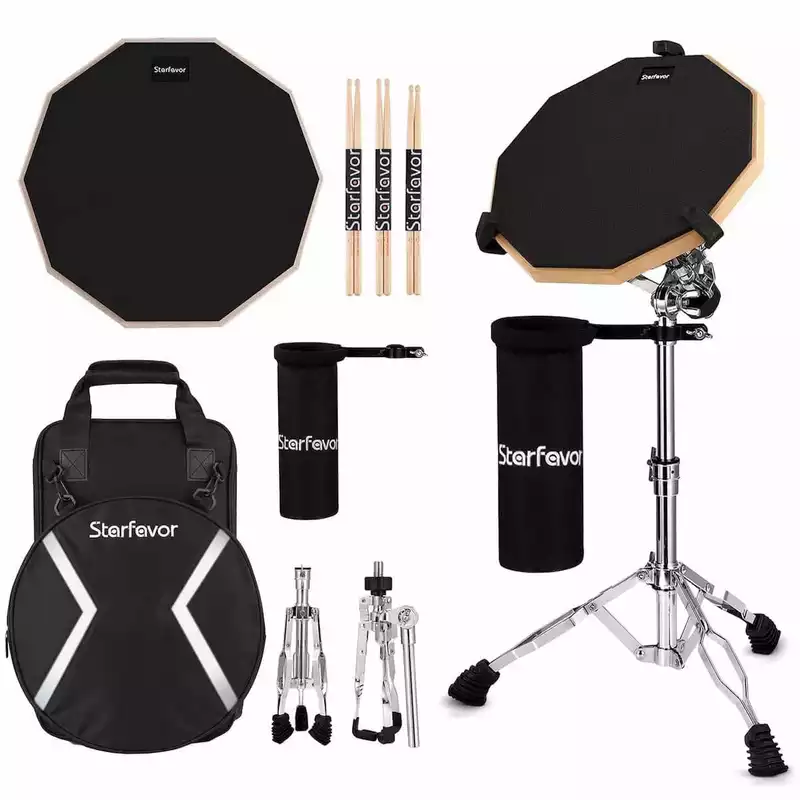 If you’re a beginner drummer looking for an affordable, all-in-one drum practice pad set, the Starfavor Drum Practice Pad with Snare Drum Stand Set is a great option.